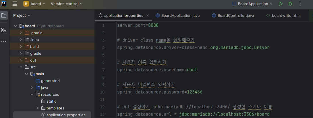 spring.datasource.url = jdbc:mariadb://localhost:3306/board