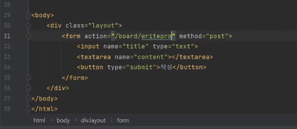 <form action="/board/writepro" method="post">