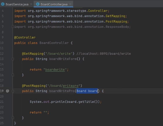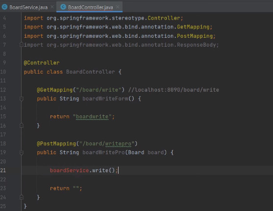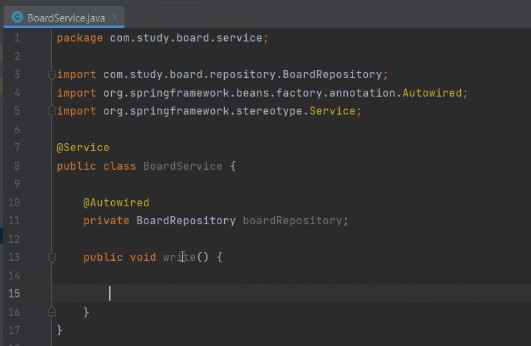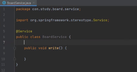 그러면 boardService.write(); 이렇게 해서 넘겨주면 된다.