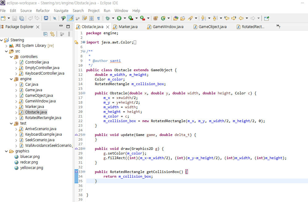 | public void update(Game game, double delta_t) | 게임 업데이트 처리 (장애물의 움직임에 관련) |