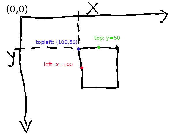 여기에서 left는 왼쪽 변의 중앙값을 말하고, top은 윗변의 중앙값을 가리킨다.