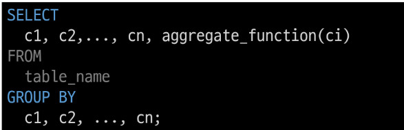 그룹화할 필드의 목록은 GROUP BY 뒤에 작성한다