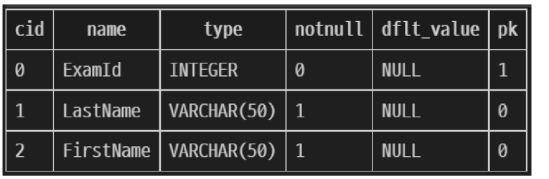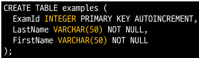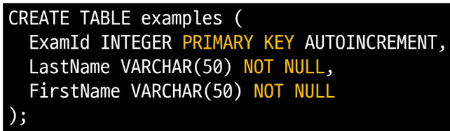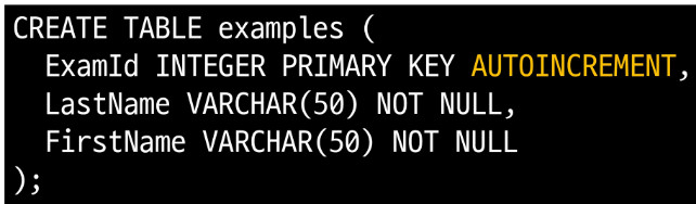 ExamId INTEGER PRIMARY KEY AUTOINCREMENT,