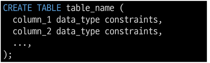 테이블, 필드에 대한 제약조건 (constraints) 작성