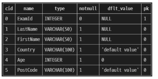 1. examples 테이블의 Address 필드 이름을 PostCode로 변경하기