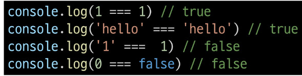 | 두 피연산자의 값과 타입이 모두 같은 경우 true를 반환한다 같은 객체를 가리키거나, 같은 타입이면서 같은 값인지를 비교한다 엄격한 비교가 이루어지며 암묵적 타입 변환이 발생하지 않는다 특수한 경우를 제외하고는 동등 연산자가 아닌, 일치 연산자의 사용을 권장한다. |