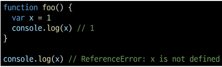 함수 스코프를 가지는 변수는 함수 바깥에서 접근할 수 없다.