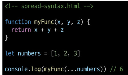 | ① 함수 호출 시 인자 확장 | ② 나머지 매개변수 (압축) |