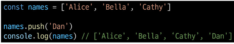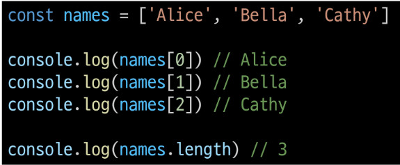 | 대괄호 ( '[ ]' ) 를 이용해 작성한다 요소 자료형 : 제약이 없다 length 속성을 사용해, 배열에 담긴 요소가 몇 개인지 알 수 있다 |