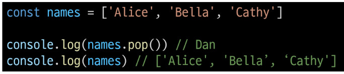 | 배열 끝에 요소를 제거함 제거한 요소를 반환한다 |