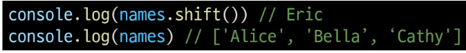 | 배열 앞에 요소를 제거하고, 제거한 요소를 반환한다 |