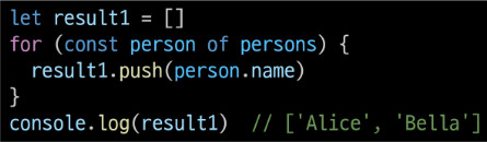 배열을 순회하며 각 객체의 name 속성 값을 추출하기 ( for ...of와 비교)