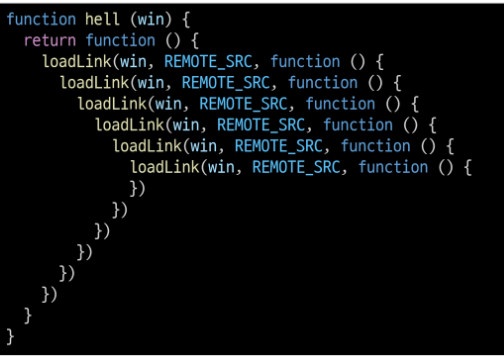 | 비동기 처리를 위한 콜백을 작성할 때 마주하는 문제 작성된 코드의 형태가 마치 "피라미드"와 같다고 해서 Pyramid of doom (파멸의 피라미드)라고 불린다 |