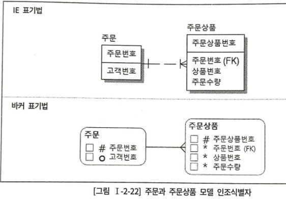 | 엔터티 내부에서 스스로 만들어지는 식별자 | 타 엔터티와의 관계를 통해 타 엔터티로부터 받아오는 식별자 |